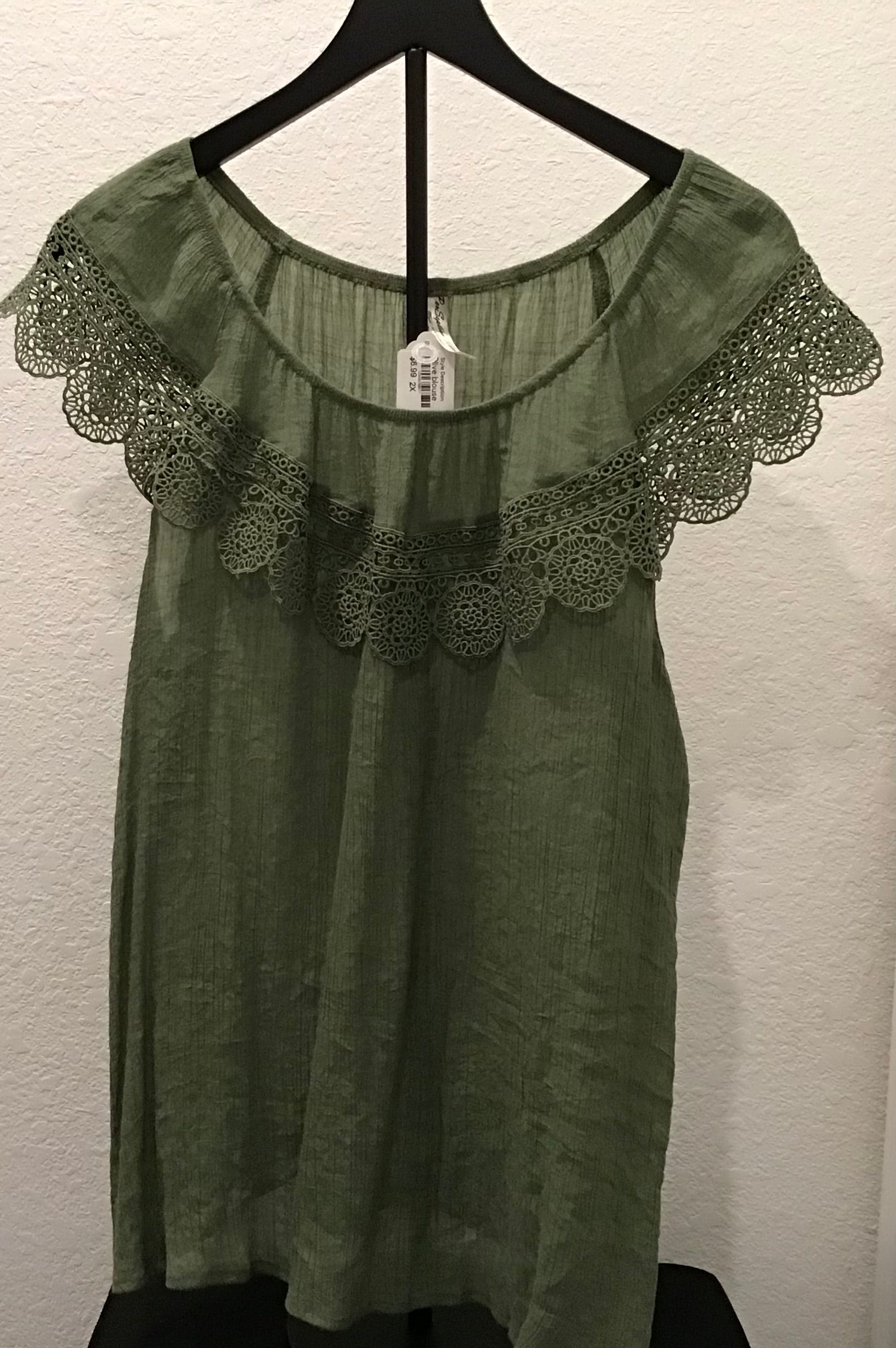 Keep it simple and comfy with this cool green blouse. Goes great with a pair of capris and sandals. Great consignment item!