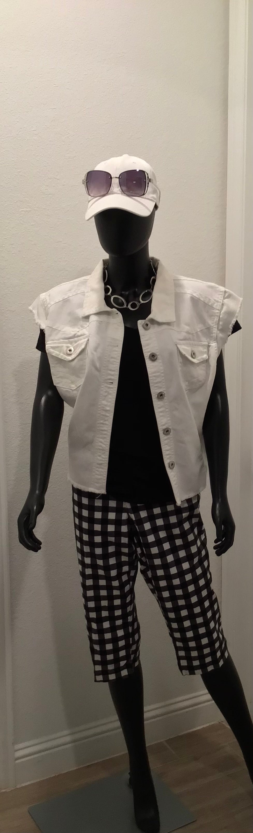 Consignment items- capri, vest, top, necklace.