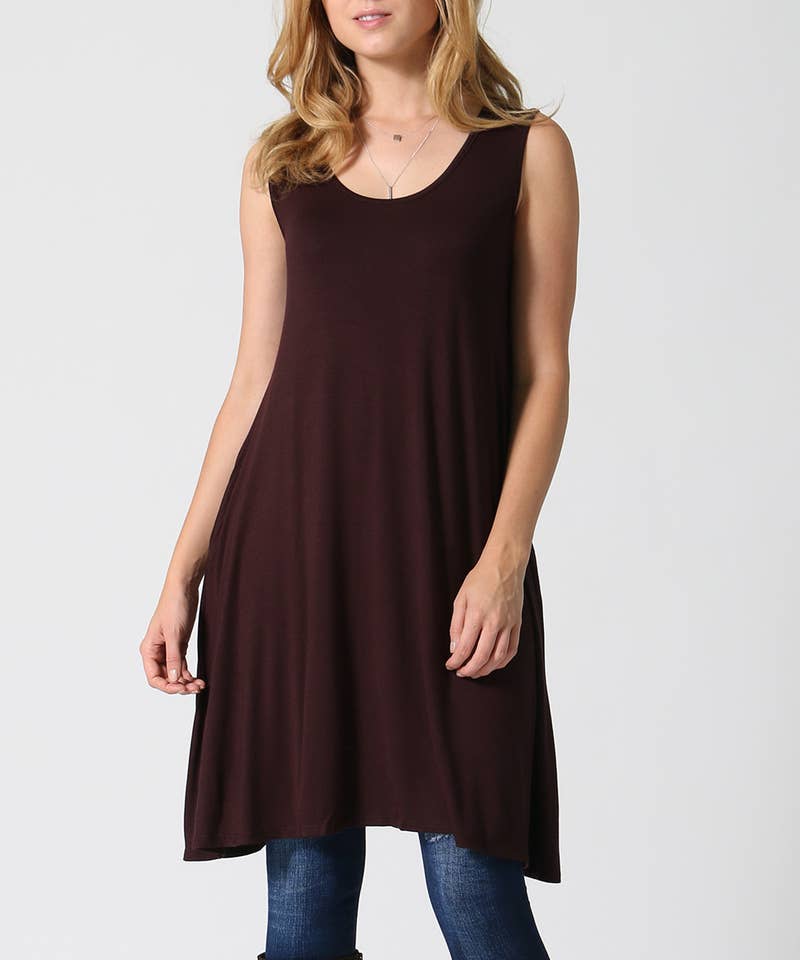 Signature Side Pockets Dress SLEEVELESS FLARED DRESS WITH SIDE POCKETS TOTAL BODY LENGTH: 36", BUST: 34" approx. - MEASURED FROM SMALL Material: 57% POLYESTER 38% RAYON 5% SPANDEX Anchor Bestseller