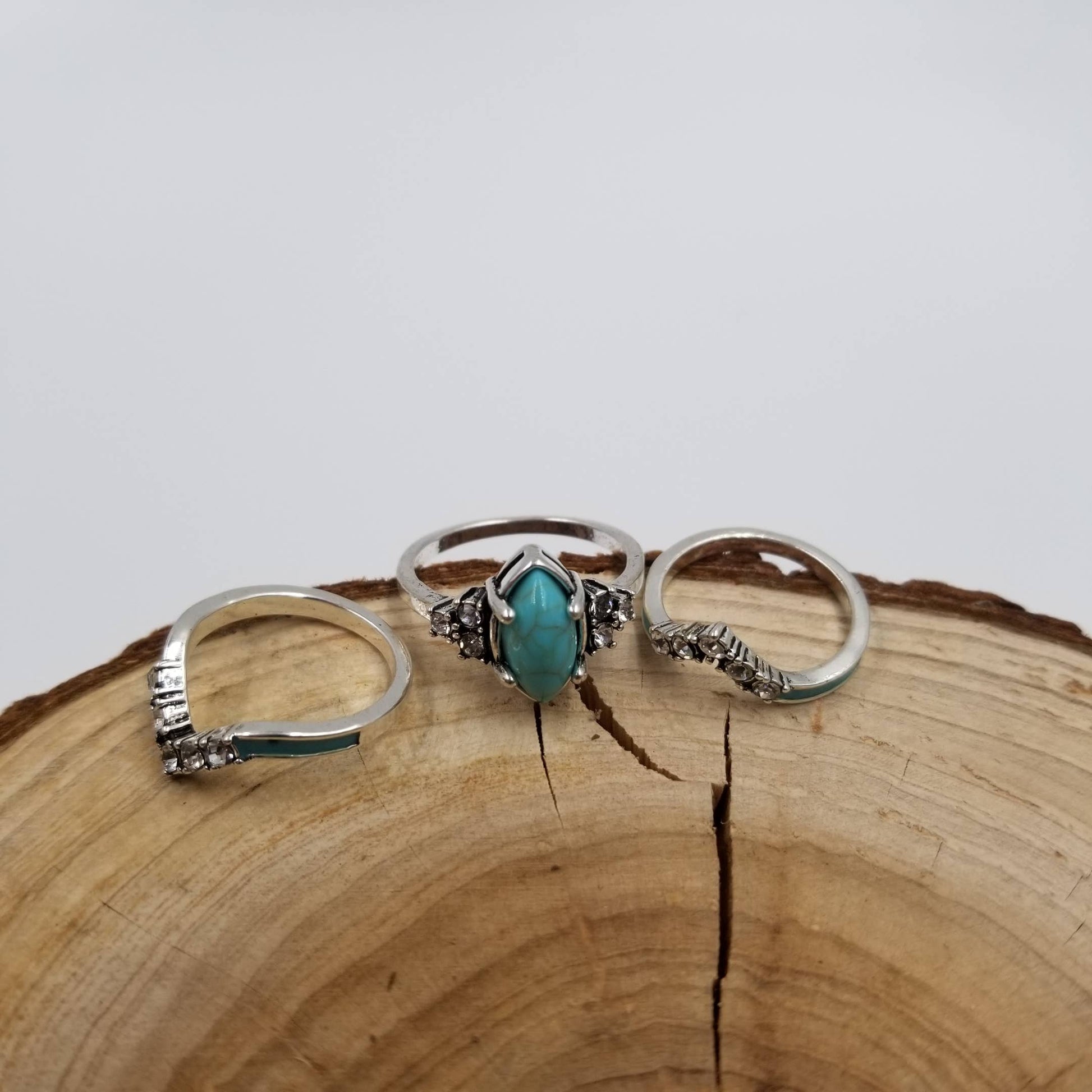 Silver Vintage Turquoise & Diamond Ring Set Of 3: 11